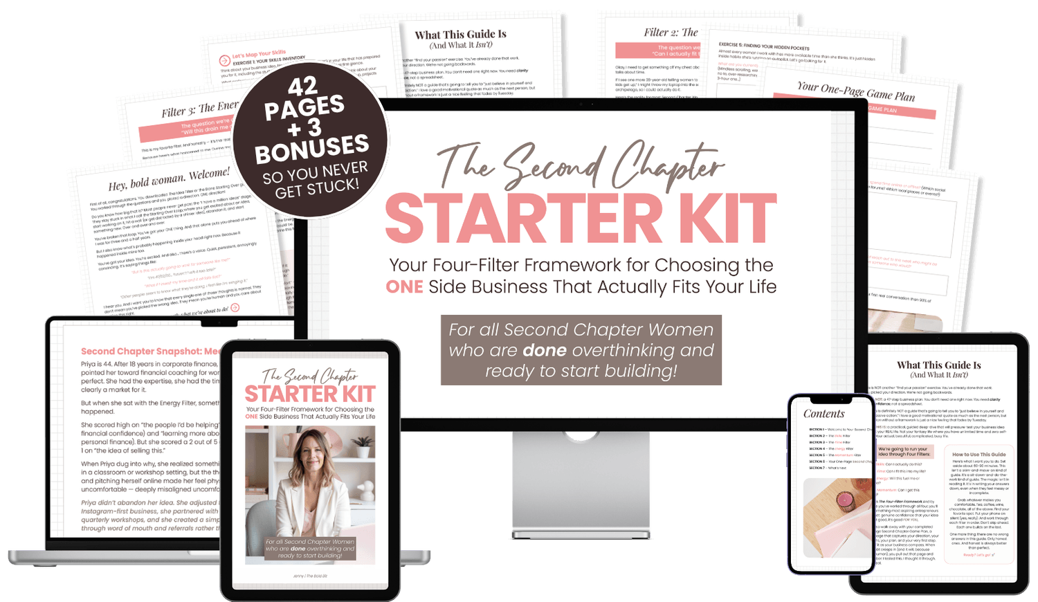 ✨ You're a woman 40+ with a side business idea (or several) and you need help choosing the ONE that actually fits your real life
